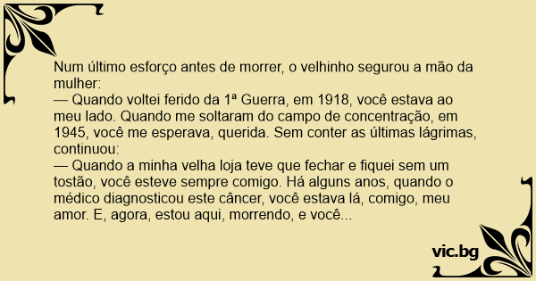 Num último esforço antes de morrer, o velhinho segurou a mão da mulher: