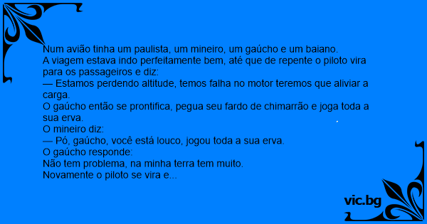Num avião tinha um paulista, um mineiro, um gaúcho e um baiano.