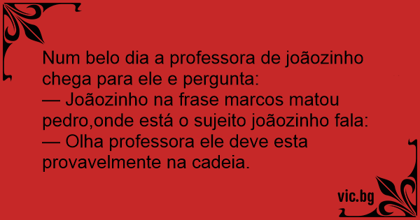 Num belo dia a professora de joãozinho chega para ele e pergunta: