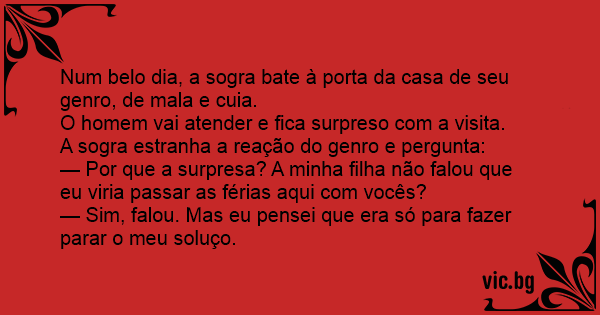 Num belo dia, a sogra bate à porta da casa de seu genro, de mala e cuia.