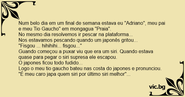 "É meu caro japa quem siri por último siri melhor"