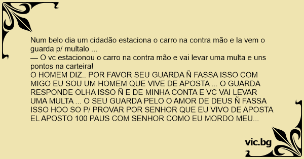 Num belo dia um cidadão estaciona o carro na contra mão e la vem o guarda p/ multalo ...