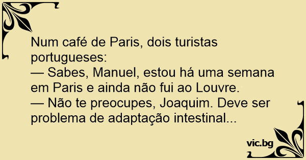 — Sabes, Manuel, estou há uma semana em Paris e ainda não fui ao Louvre.