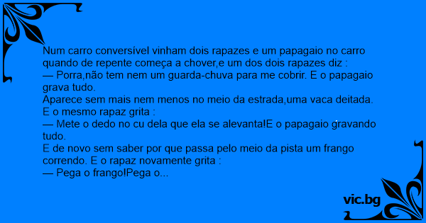 Num carro conversível vinham dois rapazes e um papagaio no carro quando de repente começa a chover,e um dos dois rapazes diz :