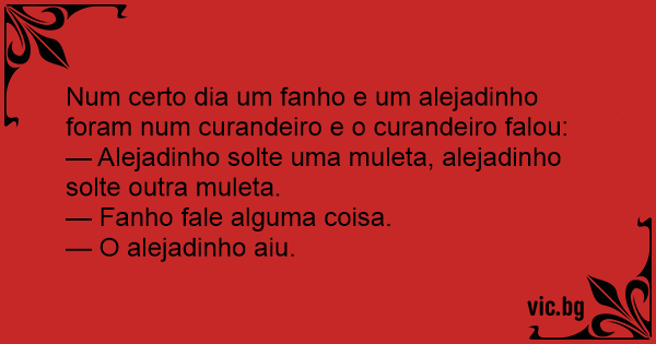 Num certo dia um fanho e um alejadinho foram num curandeiro e o curandeiro falou: