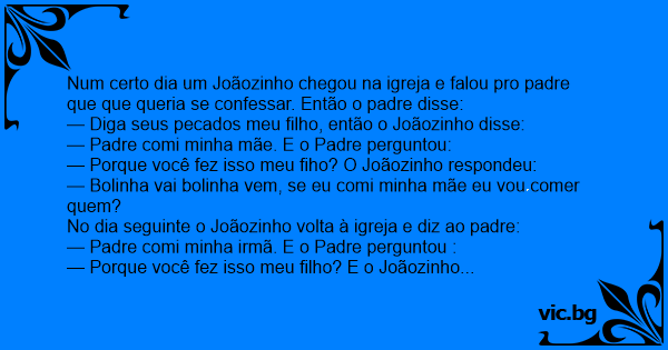 Num certo dia um Joãozinho chegou na igreja e falou pro padre que que queria se confessar. Então o padre disse: