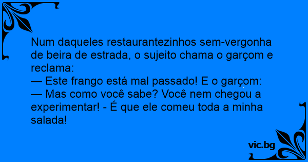 — Este frango está mal passado! E o garçom: