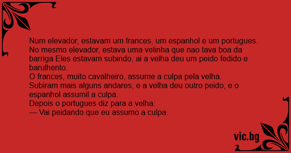 Num elevador, estavam um frances, um espanhol e um portugues.