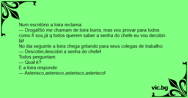 — Droga!Só me chamam de loira burra, mas vou provar para todos como ñ sou,já q todos querem saber a senha do chefe eu vou decobri-lá!