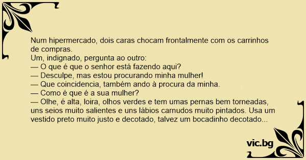 — Desculpe, mas estou procurando minha mulher!