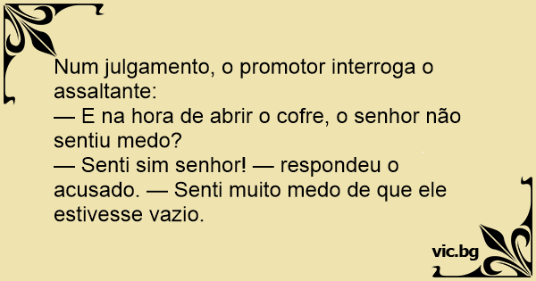 — Senti sim senhor! — respondeu o acusado. — Senti muito medo de que ele estivesse vazio.