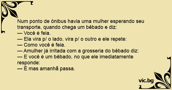 Num ponto de ônibus havia uma mulher esperando seu transporte, quando chega um bêbado e diz: