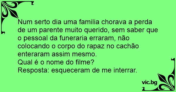 Num serto dia uma familia chorava a perda de um parente muito querido, sem saber que o pessoal da funeraria erraram, não colocando o corpo do rapaz no cachão enteraram assim mesmo.