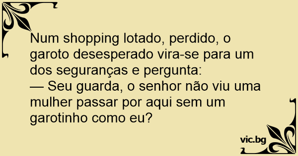 Num shopping lotado, perdido, o garoto desesperado vira-se para um dos seguranças e pergunta: