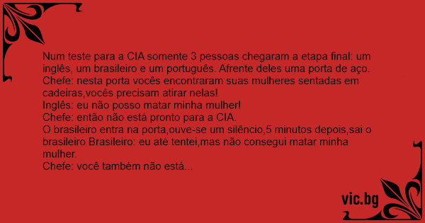 Num теsте para a CIA somente 3 pessoas chegaram a etapa final: um inglês, um brasileiro e um português. Afrente deles uma porta de aço.