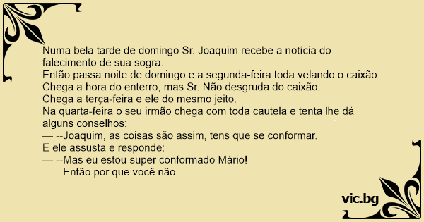 Numa bela tarde de domingo Sr. Joaquim recebe a notícia do falecimento de sua sogra.