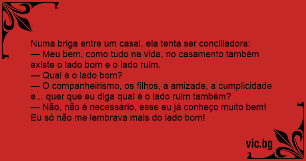 — Meu bem, como tudo na vida, no casamento também existe o lado bom e o lado ruim.