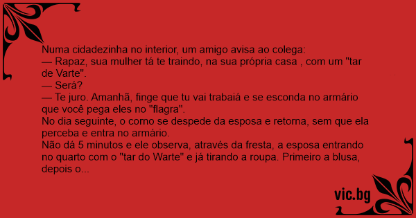 — Rapaz, sua mulher tá te traindo, na sua própria casa , com um "tar de Varte".
