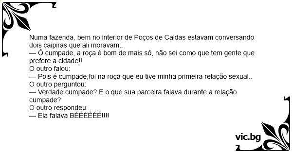 Numa fazenda, bem no interior de Poços de Caldas estavam conversando dois caipiras que ali moravam..
