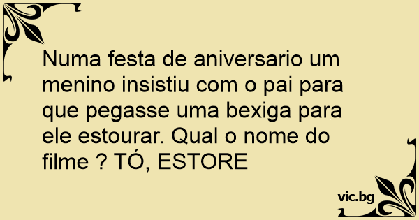 Numa festa de aniversario um menino insistiu com o pai para que pegasse uma bexiga para ele estourar. Qual o nome do filme ? TÓ, ESTORE