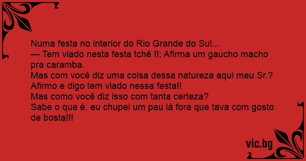 — Tem viаdо nesta festa tchê !!; Afirma um gaucho macho pra caramba.