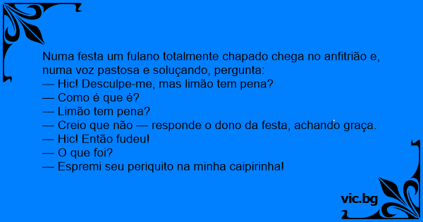 Numa festa um fulano totalmente chapado chega no anfitrião e, numa voz pastosa e soluçando, pergunta: