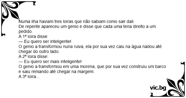 Numa ilha haviam tres loiras que não sabiam como sair dali.