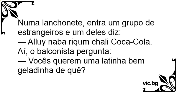 Numa lanchonete, entra um grupo de estrangeiros e um deles diz: