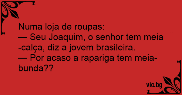 — Seu Joaquim, o senhor tem meia-calça, diz a jovem brasileira.