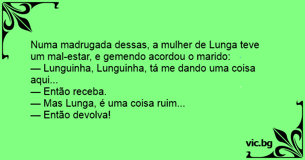 — Lunguinha, Lunguinha, tá me dando uma coisa aqui...