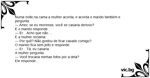 — Amor, se eu morresse, você se casaria denovo?