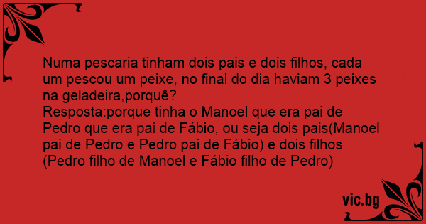 Numa pescaria tinham dois pais e dois filhos, cada um pescou um peixe, no final do dia haviam 3 peixes na geladeira,porquê?