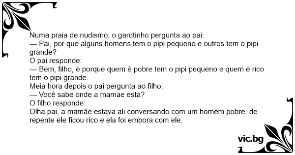 — Bem, filho, é porque quem é pobre tem o pipi pequeno e quem é rico tem o pipi grande.
