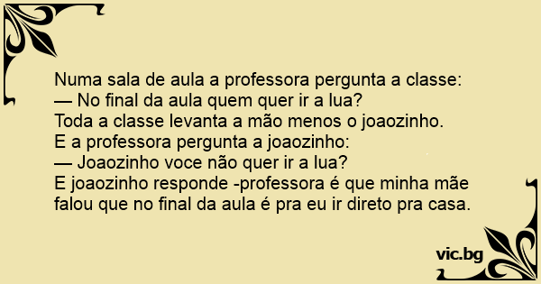 E joaozinho responde -professora é que minha mãe falou que no final da aula é pra eu ir direto pra casa.
