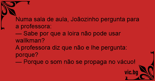 Numa sala de aula, Joãozinho pergunta para a professora: