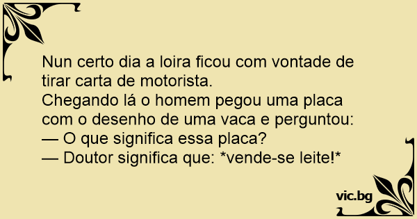 Nun certo dia a loira ficou com vontade de tirar carta de motorista.