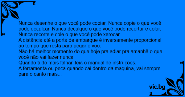 Nunca desenhe o que você pode copiar. Nunca copie o que você pode decalcar. Nunca decalque o que você pode recortar e colar. Nunca recorte e cole o que você pode xerocar.