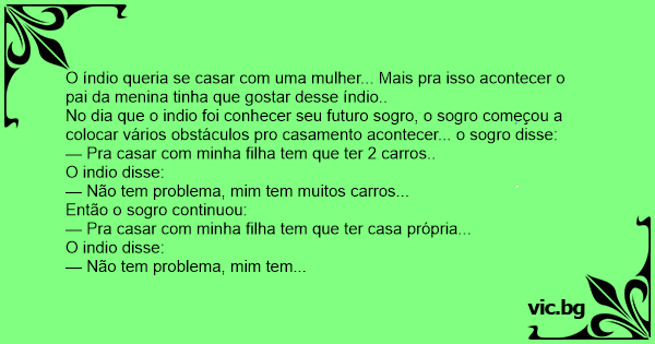 O sogro não satisfeito com o indio disse: