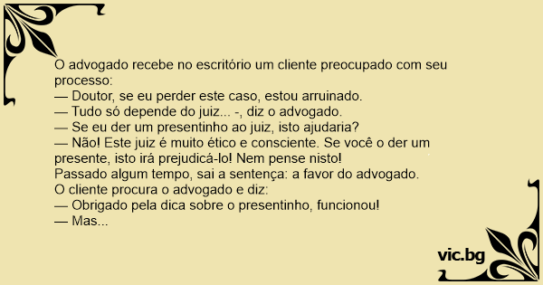 Passado algum tempo, sai a sentença: a favor do advogado.