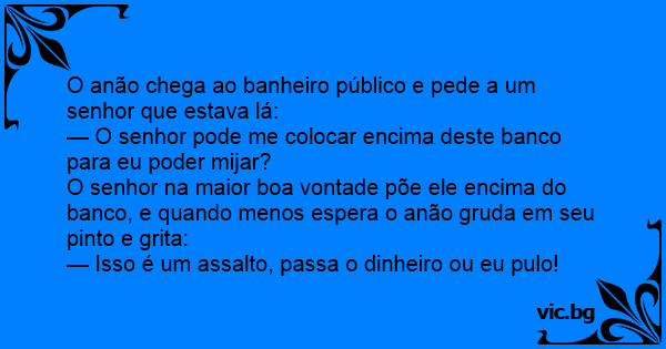 O anão chega ao banheiro público e pede a um senhor que estava lá: