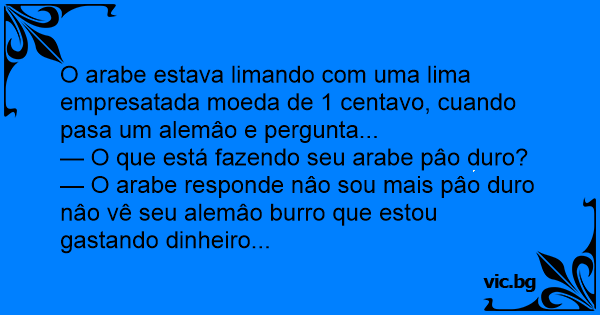 O arabe estava limando com uma lima empresatada moeda de 1 centavo, cuando pasa um alemâo e pergunta...