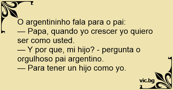 — Y por que, mi hijo? - pergunta o orgulhoso pai argentino.