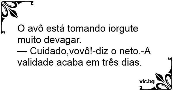 — Cuidado,vovô!-diz o neto.-A validade acaba em três dias.