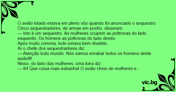— Ih! Que coisa mais estranha! O avião cheio de mulheres e vocês vão enrabar logo os homens???