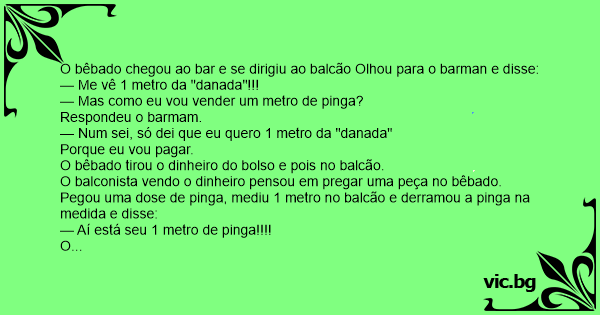 Pegou uma dose de pinga, mediu 1 metro no balcão e derramou a pinga na medida e disse: