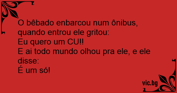 O bêbado enbarcou num ônibus, quando entrou ele gritou: