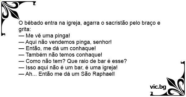 O bêbado entra na igreja, agarra o sacristão pelo braço e grita: