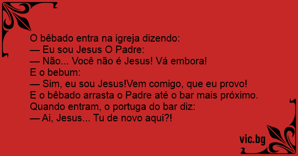 E o bêbado arrasta o Padre até o bar mais próximo. Quando entram, o portuga do bar diz: