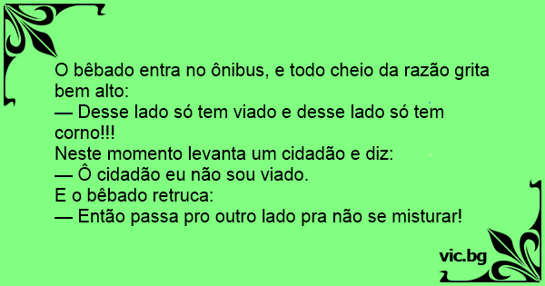 O bêbado entra no ônibus, e todo cheio da razão grita bem alto: