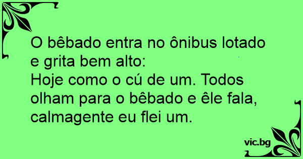 Hoje como o cú de um. Todos olham para o bêbado e êle fala, calmagente eu flei um.